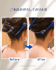 このお客様の襟足は、産毛のみお剃りするだけで綺麗なラインが作れる襟足だったため、余分な産毛のみお剃りしました!